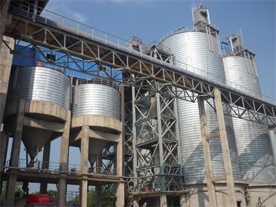大型面粉钢板仓具有许多优势。首先,它们的容量大,可以储存大量的面粉,减少了频繁的运输和储存成本。其次,它们的结构坚固,能够承受重压和恶劣天气条件,保证了面粉的安全储存。此外,它们的维护成本低,因为它们没有像传统仓库那样的木质结构,不需要定期维修和防腐处理。,它们的建设速度快,可以在较短的时间内完成建设,减少了建设周期。